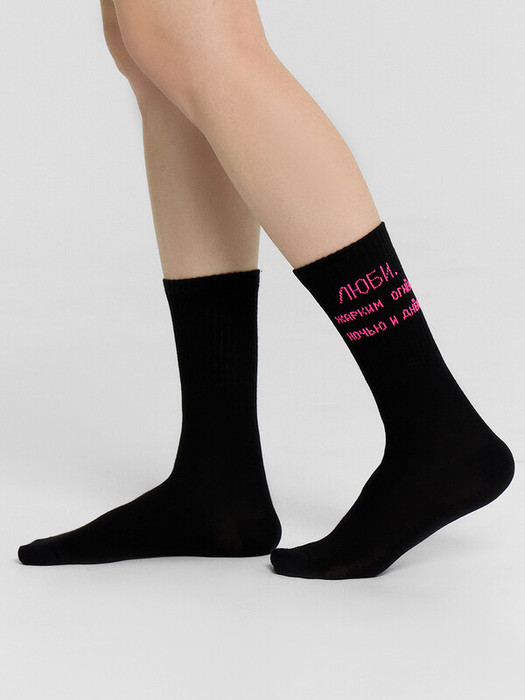 Эти высокие женские носки с надписью "ЛЮБИ...жарким огнем, ночью и днем" станут стильным и романтичным дополнением вашего гардероба. Мягкий и дышащий материал обеспечивает комфорт при носке, а оригинальная надпись добавляет индивидуальности и оригинальности образу. Такие носочки отлично подойдут как для повседневного ношения, так и для создания ярких и запоминающихся образов.