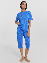 Красивый пижамный комплект из высококачественного хлопка с принтом. В комплект входит футболка и бриджи. Классическая прилегающая футболка и удобные практичные бриджи длиной чуть ниже колена, зауженные к низу. Эластичная резиночка в поясе не стесняет движений, не давит и не мешает наслаждаться отдыхом. Очень удобный и мягкий комплект для занятий домашними делами и отдыха. Отлично подойдет вам для спорта в домашней обстановке за счет мягкой и эластичной ткани. Хорошо тянется и не стесняет движений при ходьбе. Если вам станет прохладно такой комплект можно дополнить более теплым верхом из линейки домашней одежды для женщин. Материал изделия прочный и комфортный, не теряет свой внешний вид и форму в процессе носки. Отлично подходит как повседневная одежда для дома, сна и отдыха. Если вы давно в поиске комфортной модели в свой домашний гардероб — эта модель отличный выбор. Будьте красивыми всегда в домашней одежде от Mark Formelle!