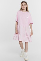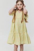 Многоярусное платье силуэта оверсайз для девочек. Вырез классический – круглый, не глубокий. Спущенная линия плеча дарит особый комфорт. Рукава короткие, подогнуты. Нижние ярусы платья выполнены из поплина. Рекомендуем!