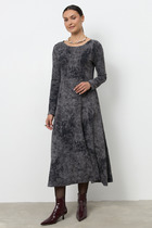 Платье свободного силуэта из футера. Платье имеет длину "миди" и удлиненную линию плеча. Изюминка модели – изящные боковые разрезы, которые очень популярны в текущем сезоне. Рукава короткие, вырез горловины круглый. Стильно!