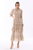 Платье изготовлено из текстильного полотна. Платье на бретельках полуприлегающего силуэта, длиной до колен. Перед и спинка с вертикальными рельефами. В левом боковом шве обработана застежка на потайную молнию. Верхний срез лифа обработан обтачкой из осн. полотна. Низ платья обработан швом вподгибку.