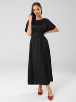 Очаровательное женское платье из нежной и легкой вискозы. Платье расширяется к низу, талия подчеркнута широким поясом. Рукава-фонарики длиной до локтя. Длина модели ниже колена. Рекомендуем для стильных летних образов!