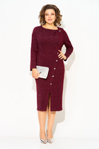 Прилегающее женское платье длиной ниже колена. Выполнено из трикотажной рибаны – в рубчик. Вырез круглый, с чуть удлиненным воротником. Рукава узкие, слегка удлиненные. От линии бедер платье расширяется и завершается асимметричным нижним краем. Красиво!