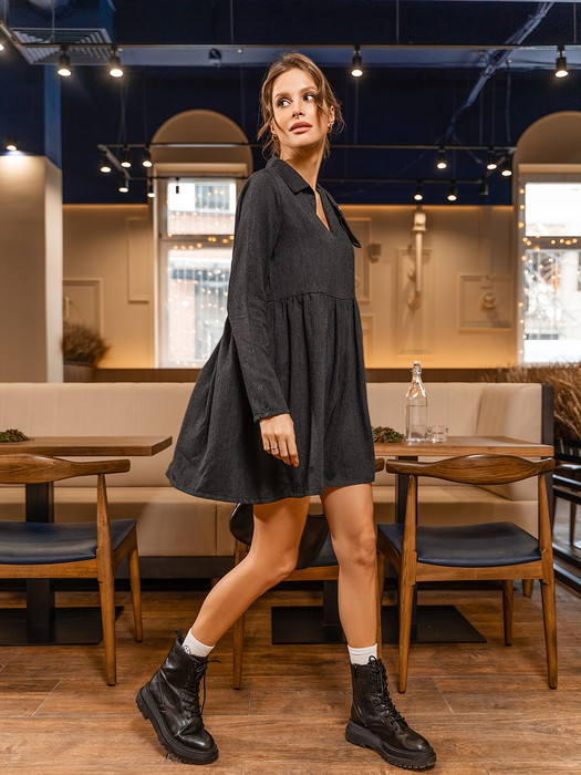ESENIA Платье женское удлиненная модель с отложным воротником - Тёмно-зелёный