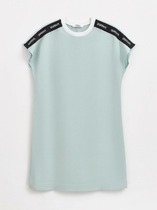 Нижняя часть платья с расклешением. Длина выше колен. Низ платья и рукавов обработан швом вподгибку.