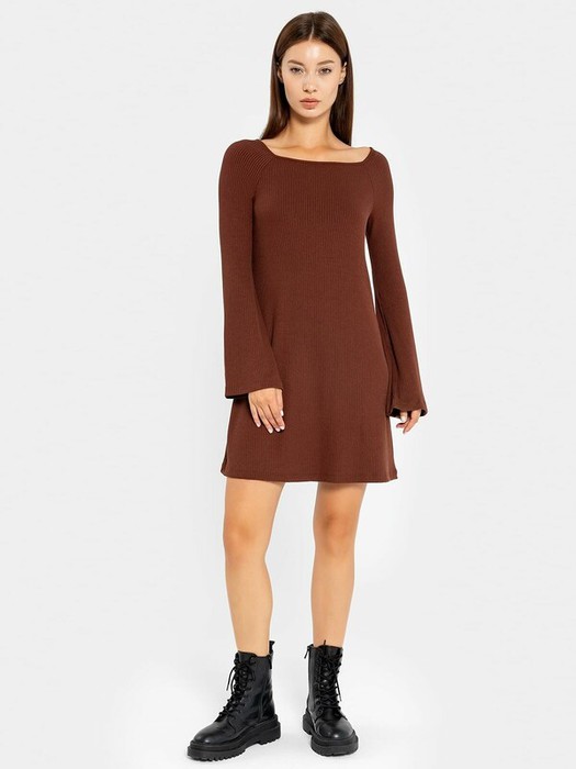 Рукав длинный, расширяется к низу. Платье расширяется к низу. Платье длиной выше колена