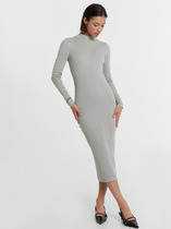 Платье прямое свободное, длиной миди. Горловина V-образной формы со стояче-отложным воротником. Плечо слегка спущено, рукав втачной, длинный. По низу рукавов отрезные манжеты с разрезами. Центральная застежка на петли и пуговицы. В боковых швах обработаны карманы. По бокам внизу обработаны разрезы. Нижний срез платья обработан швом вподгибку с закрытым срезом.