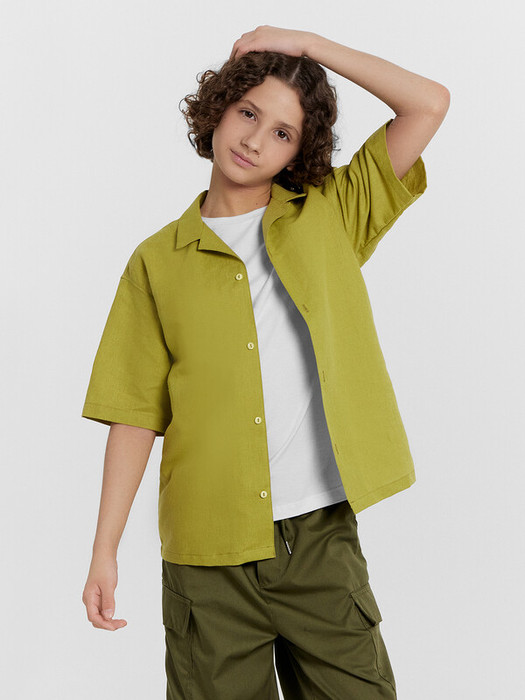 Сорочка верхняя для мальчиков прямого силуэта с воротником. По переду обработана застежка на пуговицы d=10mm и петли. Рукава короткие, втачные, слегка спущены. Нижние срезы изделия и рукавов обработаны швом в подгибку.