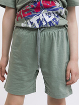 Шорты для девочек свободного силуэта из ткани. Посадка высокая. На детали переда карманы с отрезным бочком. Пояс отрезной с эластичной тесьмой RV40 внутри, на поясе пробиты петли и вставлен шнур из основного полотна. Шов втачивания пояса распошит. Длина выше колена. Низ обработан швом вподгибку с закрытым краем.