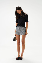 Шорты прямые свободные, длиной выше колен.