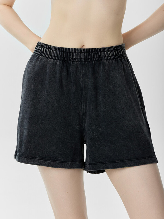 Шорты свободные, короткие. Посадка высокая. Пояс цельнокроеный с эластичной тесьмой внутри (внутр. 40мм, 40RV). В боковых швах обработаны карманы, подкладка из основного полотна. На задней правой половинке накладной карман. Нижние срезы обработаны швом вподгибку.