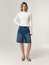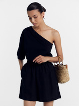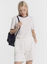 Мини-шорты свободного силуэта из легкого трикотажного футера. Высокая посадка на талии, эластичная тесьма в поясе, регулировочный шнурок-завязка и удобные боковые карманы – комфортный минимализм!