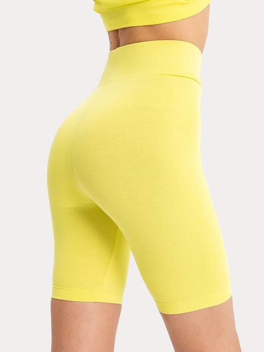 Шорты-велосипедки облегающего силуэта. Выполнены из нежной хлопковой кулирки. Длина модели выше колен. Линия талии завышенная. Широкий отрезной пояс и эластичная тесьма в талии дарят особый комфорт.