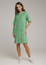 Просторная ночная сорочка из эластичного трикотажного полотна с широкой декоративной рюшей вдоль низа. Без вытачек, длиной до середины бедра. Благодаря натуральному  хлопку в составе эта модель идеально подходит для сна.