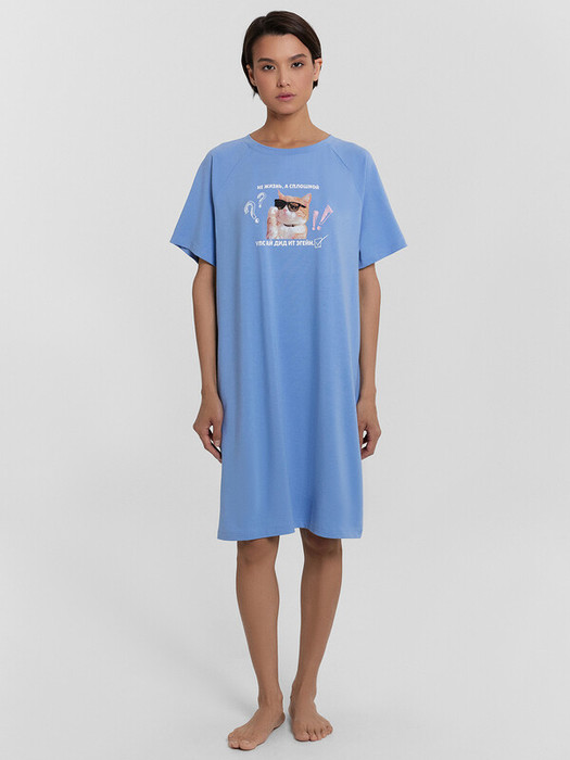Совместные покупки Челябинск Женская одежда Пижамы, халаты — Mark Formelle СОРОЧКА НОЧНАЯ ЖЕНСКАЯ 572385 572385 св.синий +печать 18114
