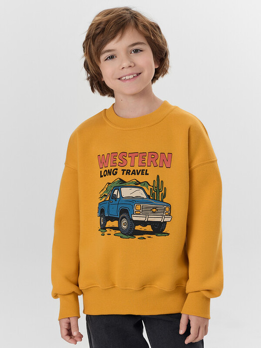 Свитшот свободного силуэта. Рукава длинные, втачные. Линия плеча спущена. По переду декоративное членение. Горловина круглой формы c окантовкой из трикотажного полотна рибаны. Низ рукавов и изделия обработаны трикотажным полотном рибана .