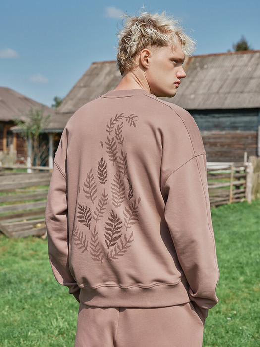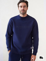 Свитшот свободного силуэта. Горловина округлой формы, обработана обтачкой из рибаны. Шов втачивания обтачки по спинке закрыт тесьмой. Рукава втачные длинные, 2х шовные. С отрезными манжетами из рибаны. Линия плеча спущена. Плечевые швы смещены в сторону спинки и переходят в локтевой шов рукава. По низу отрезной пояс из рибаны.