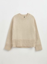 Свитшот прямой, свободный. Горловина круглой формы обработана обтачкой из рибаны. Рукава втачные длинные, с отрезными манжетами. Плечо спущено. По низу отрезной пояс. Пояс и манжеты из рибаны.