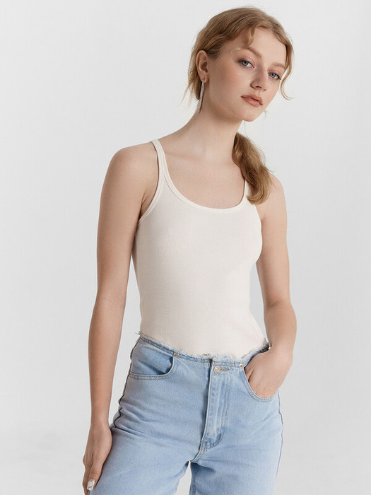Горловина округлой формы, бретели тонкие. Срезы горловины и проймы окантованы бейками из основного полотна.