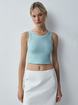 Стильный топ прилегающего силуэта. Выполнен из хлопковой трикотажной рибаны. Длина топа до линии талии. Вырез круглый, пройма "американского" типа. Рекомендуем для спорта и отдыха!