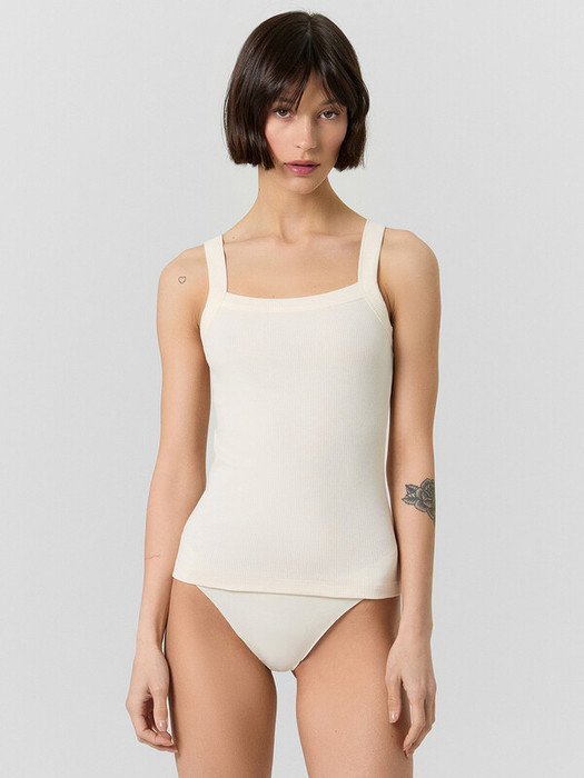 Майка женская. Полочка и спинка выполнены из рибаны. Горловина и проймы обработаны бейкой поперечной из рибаны. Нижний срез обработан вподгибку.