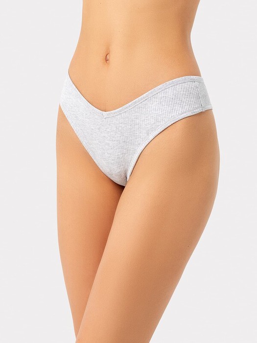 Трусы женские, средняя линия  талии, силуэт - бразилиано. Передняя и задняя детали выполнены из рибаны. Верхний срез трусов обработан бейкой поперечной из рибаны, внутри жилка 6мм. Нижние срезы обработаны бейками поперечными из рибаны. Подкладка ластовицы из хлопка, отлетная по верхнему срезу. Посередине бейки по верхнему срезу передней и задней детали застрочена «птичка».