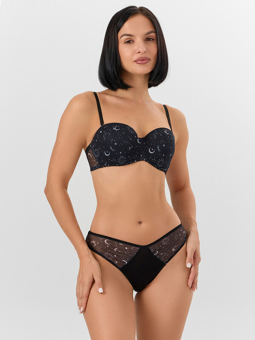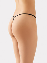 Трусы женские со средней посадкой силуэта «бразилиана». Передняя центральная деталь из кулирной глади, боковые передние детали из эластичной сетки со сборкой из шва рельефа. Подкладка ластовицы из кулирного полотна отлетная по переднему краю. Нижние срезы обработаны эластичной тесьмой на оверлоке с изнаночной стороны.