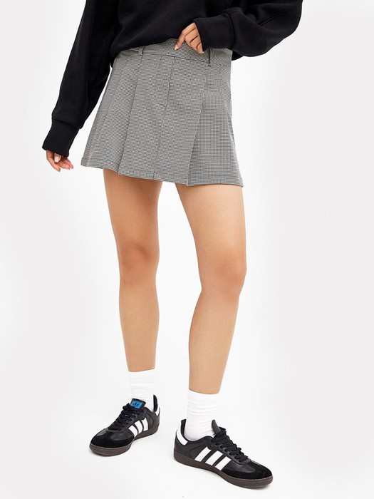 Модная юбка женская мини в складку. Модель А-силуэта из высококачественного материала с добавлением вискозы. Пояс отрезной, из основного полотна. На поясе обработаны шлевки. На передней детали по две односторонние складки. Передняя деталь с центральным швом и имитацией гульфика. Задняя деталь с центральным швом и вытачками. Застежка в боковом шве на потайную молнию. Длина — выше колена. Стильная и оригинальная юбка для создания трендовых образов. Соберите базовую капсулу для повседневных аутфитов на работу, учебу и прогулок по городу. Рекомендуем!