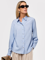 Блузка женская свободного силуэта из ткани. Блузка с цельнокроеной планкой и центральной застежкой на пуговицы. На левой детали переда накладной карман.