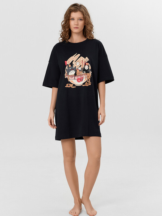 Женская туника черного цвета с принтом станет любимым предметом гардероба для дома. Она выполнена из мягкого и дышащего трикотажа на основе хлопка, который обеспечивает комфорт и приятные тактильные ощущения.