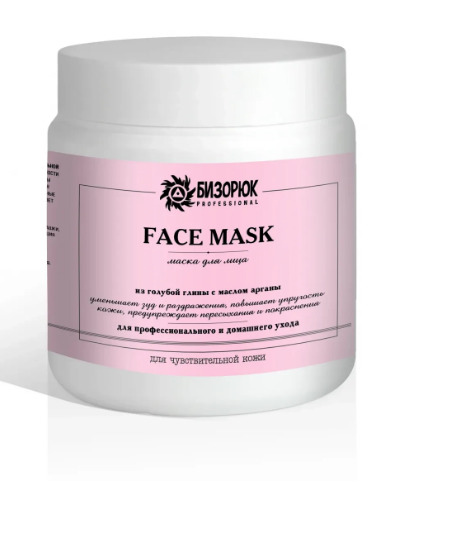 Маска для лица из голубой глины, пластик, 500 мл, "Бизорюк professional"