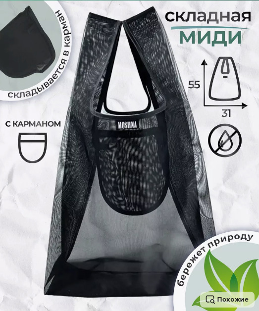 Совместные покупки Челябинск Женские аксессуары Сумки — Майка Миди (средняя) Сетка черная Сумка хозяйственная складная, авоська, мини шо