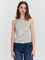Женская майка в рубчик из трикотажа кашкорсе с округлым вырезом горловины  и открытыми проймами.  Горловина и проймы окантованы.