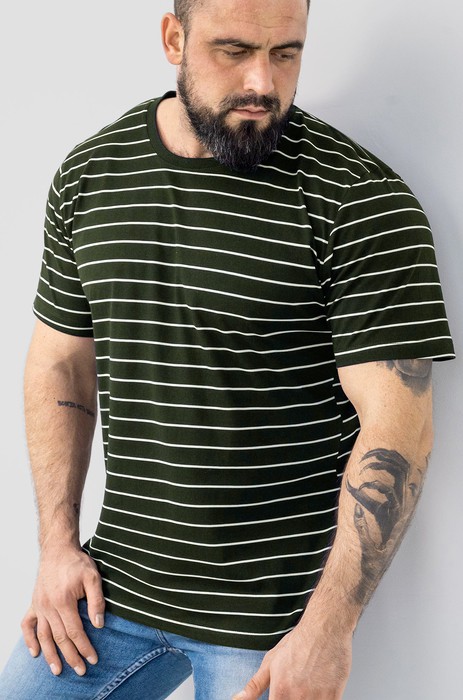 Футболка в полоску цвета хаки подходит для мужчин, ценящих удобство и простоту. Хлопковая основа и шелковистая структура трикотажа дарят комфорт и аккуратный внешний вид.