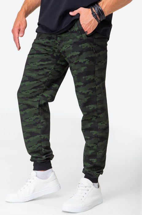 Благодаря добавлению полиэстера в ткань брюки из футера двухнитки мягкие и прочные, что делает их идеальным выбором для активного отдыха, страйкбола и занятий спортом. Спортивные джоггеры выполнены в защитном темно-зеленом цвете с рисунком в стиле милитари.