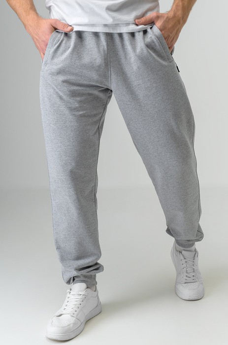 Хлопковые брюки из футера двухнитки мягкие и прочные, что делает их идеальным выбором для занятий спортом. Трикотажные однотонные штаны выполнены в базовом сером цвете.