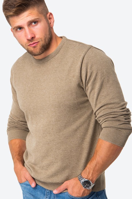 Коричневый джемпер для мужчин выполнена из вязаного трикотажа: в ней будет уютно и тепло в прохладную погоду. Хлопковый свитер из мягкой пряжи с акрилом не колется, он невероятно мягкий и приятный к телу.