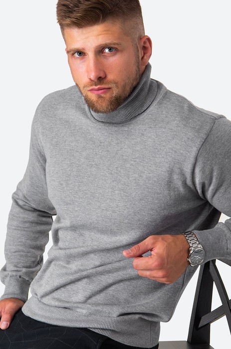 Серая водолазка с высоким воротом для мужчин выполнена из вязаного трикотажа: в ней будет уютно и тепло в прохладную погоду. Хлопковый джемпер из мягкой пряжи с акрилом не колется, он невероятно мягкий и приятный к телу.