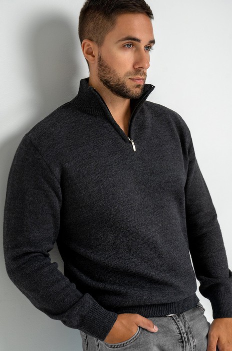Антрацитовая водолазка для мужчин выполнена из вязаного трикотажа с добавлением шерсти. Шерсть отличается естественным теплом и невероятной мягкостью. Серый джемпер из мягкой пряжи с добавлением акрила не колется, он невероятно мягкий и приятный к телу.