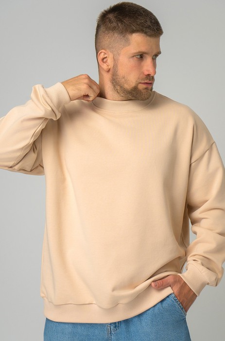 Бежевый свитшот выполнен из 100% хлопка — мягкого и прочного трикотажа. Плотный футер трехнитка сохраняет тепло в холодное время года. Эластичные манжеты защитят от ветра.