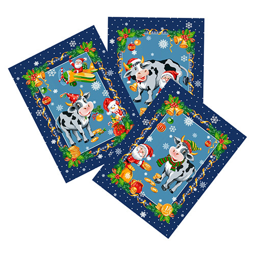 Набор полотенец Новый год 45х60 (3 шт.), 100% хлопок, Новогодний бычок синий