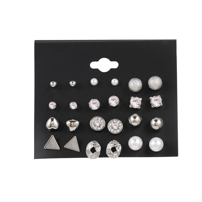 Совместные покупки Челябинск Косметика и парфюмерия Прочий макияж — Набор сережек-гвоздиков 12 пар. Цвет: Серебро