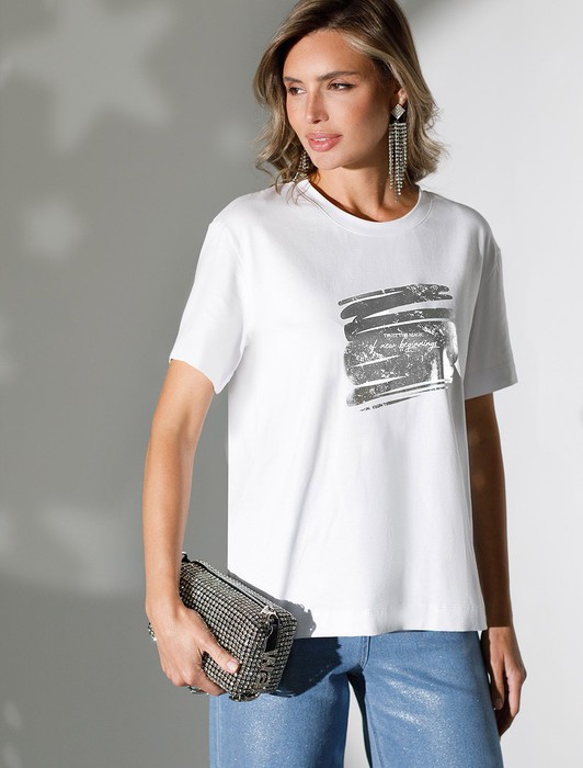 Совместные покупки Челябинск Женская одежда Джемперы, свитеры, водолазки — Нарядная футболка с принтом фольгой из премиального хлопка с эластаном