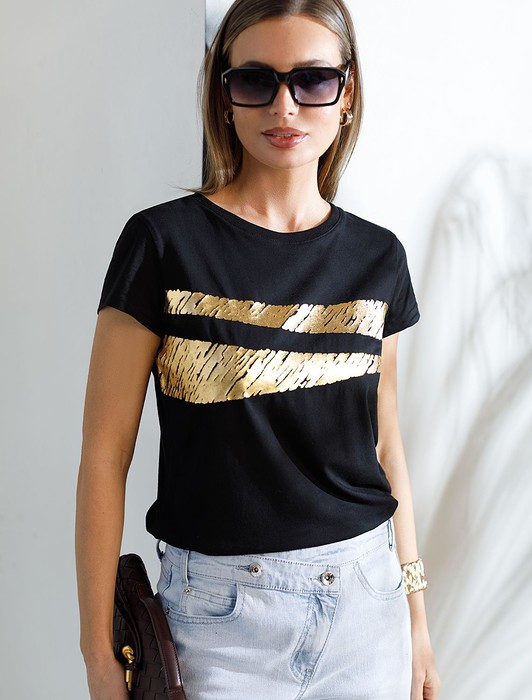 Нарядная футболка с золотистым принтом