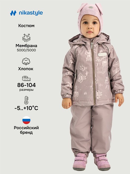 Костюм МЕДВЕЖОНОК из мембранной ткани 5000/5000Мембранная ткань - это непродуваемый и водонепроницаемый материал, который надежно защищает от ветра и влаги. Благодаря дышащим свойствам мембраны ребенку будет комфортно в любую погоду и он не вспотеет.Мембрана в сочетании с утеплителем нового поколения FIBERlite сохраняет тепло во время прогулок, позволяя телу дышать. Хлопковая подкладка обеспечит повышенный комфорт для ребенка .Функционал: - центральная застежка и карманы на молнии, - ветрозащитная планка, - капюшон с кулисой для регулировки объема, - манжеты на резинке, - внутренняя сторона манжета из флиса, - кулиса по низу для регулировки объема.Мы все продумали до мелочей, поэтому полукомбинезон дополнительно оснащен:- регулируемыми бретелями, - резинкой по низу брюк, - силиконовыми штрипками, - светоотражающими элементами для безопасности ребенка в темное время суток. Шов сидения проклеен.Комфортная температура эксплуатации от -5°С до +10°С. Рекомендуем приобрести комплектом аксессуары, обувь и другие вещи из капсулы в карточке товара, которые отлично сочетаются с изделиями коллекции