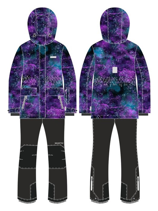 Костюм ВСЕЛЕННАЯ из мембранной ткани 5000/5000 с водо-грязеотталкивающей технологией TEFLON. Мембранная ткань это не продуваемый и водонепроницаемый материал, который надежно защищает от ветра и влаги. Благодаря дышащим свойствам мембраны ребенку будет комфортно в любую погоду, и он не вспотеет. Дополнительно на ткань нанесен светоотражающий принт.  Ткань обработана снаружи экологически чистым протектором TEFLON для защиты от воды и грязи. Мембрана в сочетании с утеплителем нового поколения FIBERlite сохраняет тепло во время прогулок, позволяя телу дышать. Флисовая подкладка отводит влагу и имеет хорошие теплоизоляционные свойства.Функционал: - центральная застежка и карманы на молнии, - внутренний карман на молнии, - ветрозащитная планка, - съемный капюшон на молнии, - кулиса для регулировки объема по капюшону и в области талии, - трикотажные манжеты в рукавах, - карман на рукаве под ски-пасс, - регулировка ширины низа рукава, - внутренние бретели для возможности снять куртку в помещении, - снегозащитная юбка.  Мы все продумали до мелочей, поэтому брюки дополнительно оснащены:- регулируемыми бретелями и отстегивающейся спинкой, - удобными карманами,- снегозащитными муфтами, - регулировкой объема брюк под обувь на молнии, - флисовой подкладкой до середины бедра, - светоотражающими элементами для безопасности ребенка в темное время суток. Область колен и шов сидения проклеены, места повышенного трения выполнены из особо прочной ткани.Комфортная температура эксплуатации от 0°С до -25° С.  Рекомендуем приобрести комплектом аксессуары, обувь и другие вещи из капсулы в карточке товара, которые отлично сочетаются с изделиями коллекции.