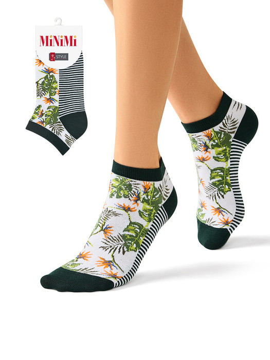 Женские короткие носки MINIMI STYLE 4604-1 с модным тропическим принтом. Изготовлены из мягкого и легкого хлопка, который обладает высокой воздухопроницаемостью, впитывает влагу, подходит для нежной и чувствительной кожи; и эластана, который обеспечивает превосходное облегание. Удобная резинка и кеттельный (плоский) шов на мыске создают дополнительный комфорт.