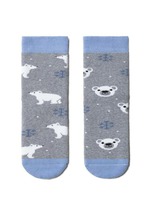 Плюшевые детские носочки в полоску, на носке вывязаны пингвины
