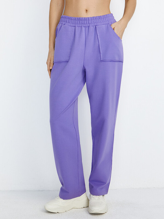 Женские прямые брюки с накладными карманами и поясом на резинке.