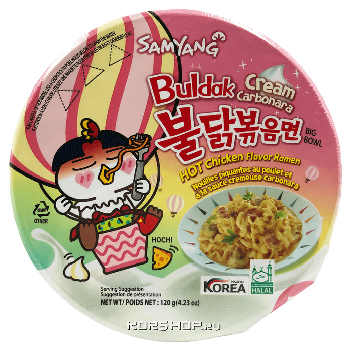 Острая лапша быстрого приготовления со вкусом курицы, соусами Бульдак и Карбонара от торговой марки Samyang объединяет в себе традиции европейской и азиатской кухни. Это потрясающее блюдо, которое позволит утолить голод, получив максимум удовольствия. Рамен заваривается за несколько минут прямо в чашке, не требуя дополнительной траты времени на готовку и последующего мытья посуды. Купить острую лапшу быстрого приготовления со вкусом курицы, соусами Бульдак и Карбонара Samyang с доставкой на дом по Москве и Подмосковью можно в интернет-магазине KorShop.ru.
